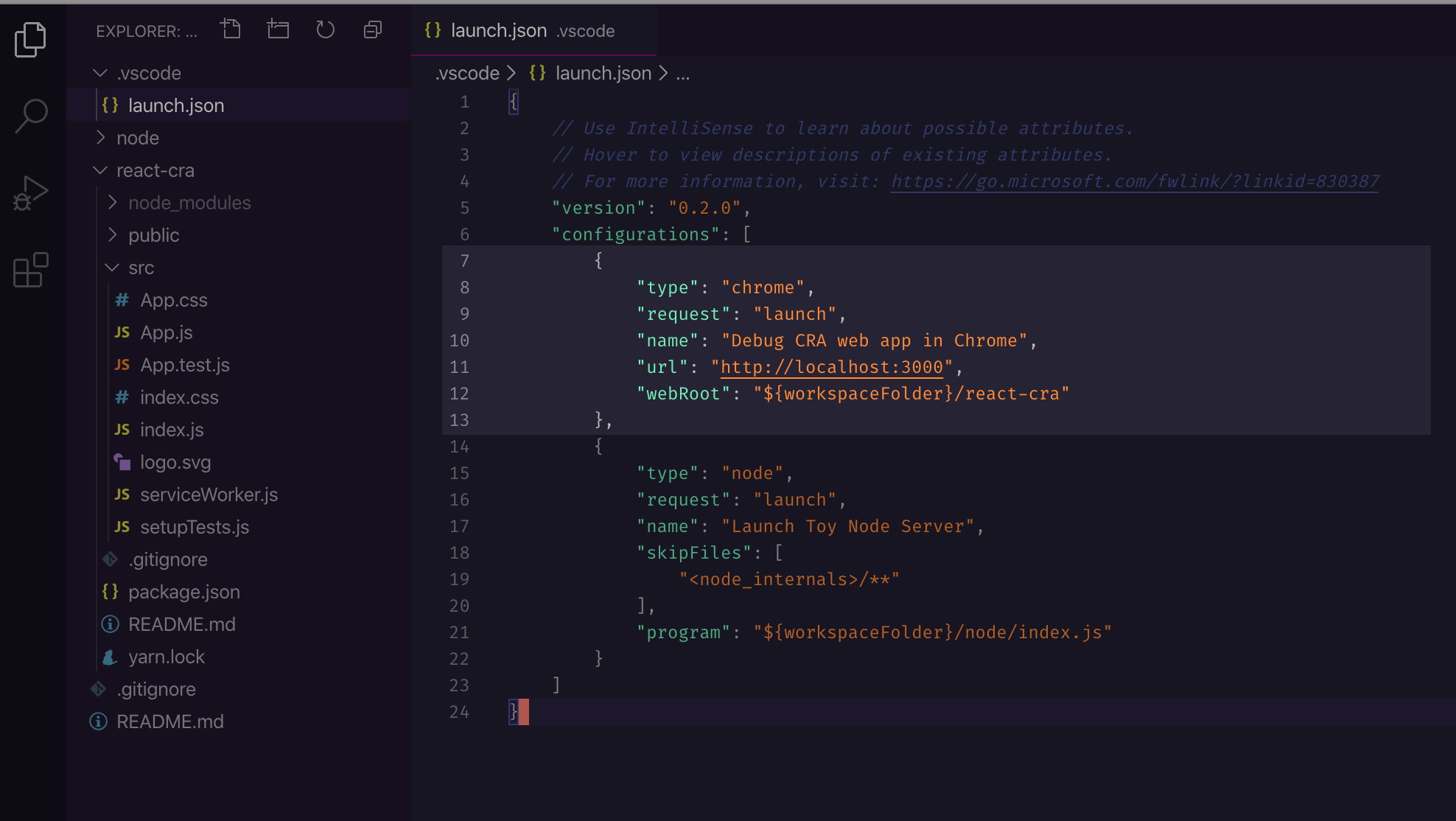 "webRoot": "${workspaceFolder}/react-cra"